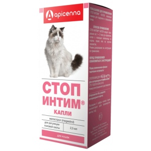8. Стоп-Интим® капли назначают для регуляции половой охоты у кошек и собак, в том числе для задержки и прерывания течки у самок кошек и сук, снижения половой активности и коррекция поведения у котов и кобелей.